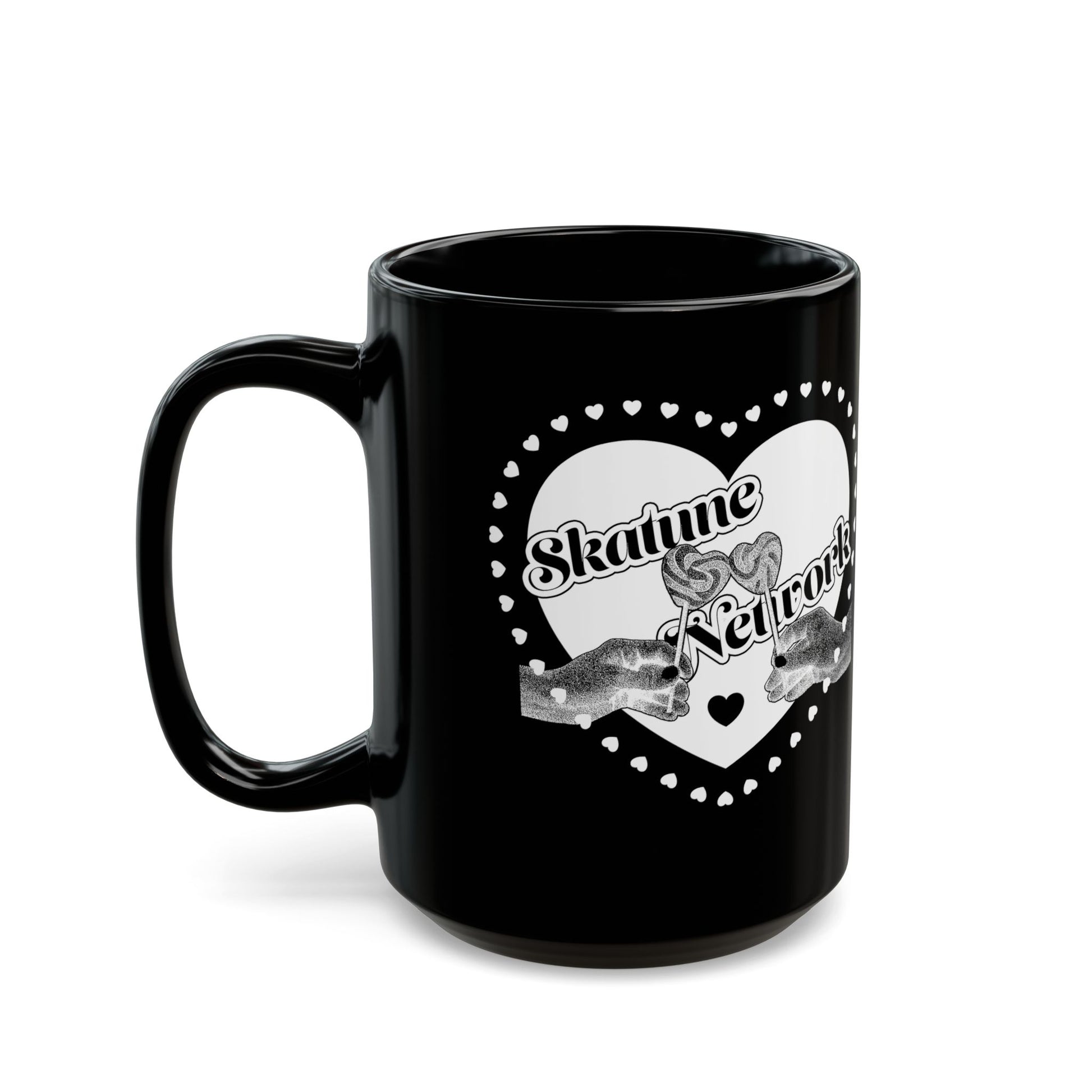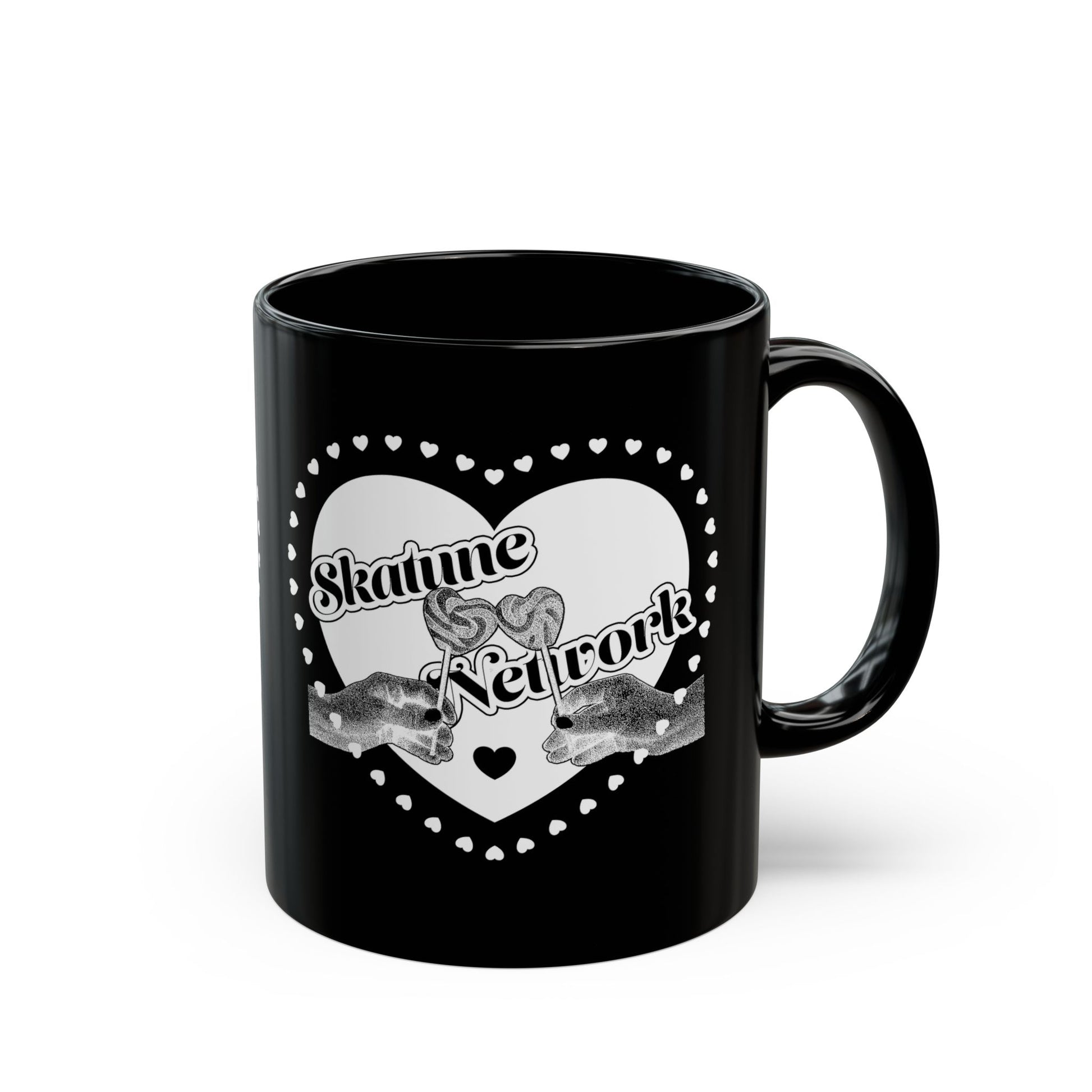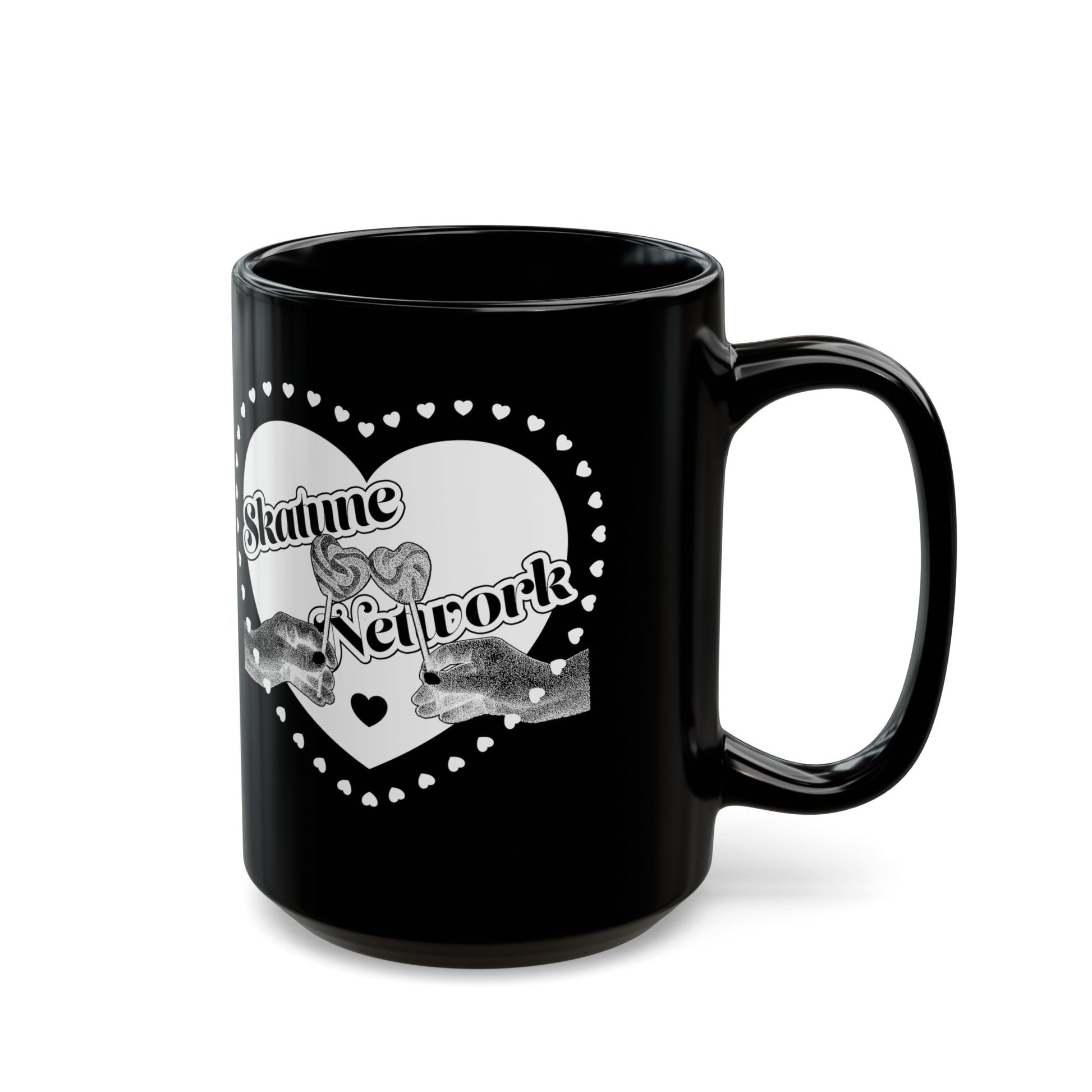 Valentine's Day | Skatune Network Lollipop Heart Black Coffee Mug – 11 or 15 ounces